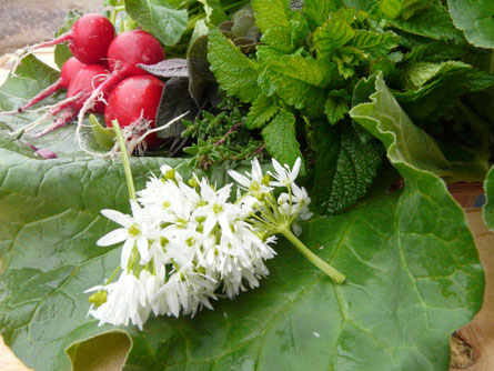 Sauerampfer, Pimpernelle, Brennessel, Vogelmire, Löwenzahn, Giersch, Bachbunge und und und